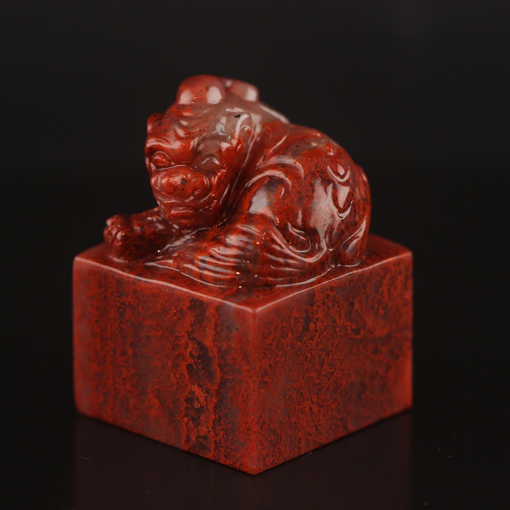 2010年中国福建寿山石/水洞高山石/朱砂紅貔瑞獣ボタン印鑑/篆刻/天然玉石