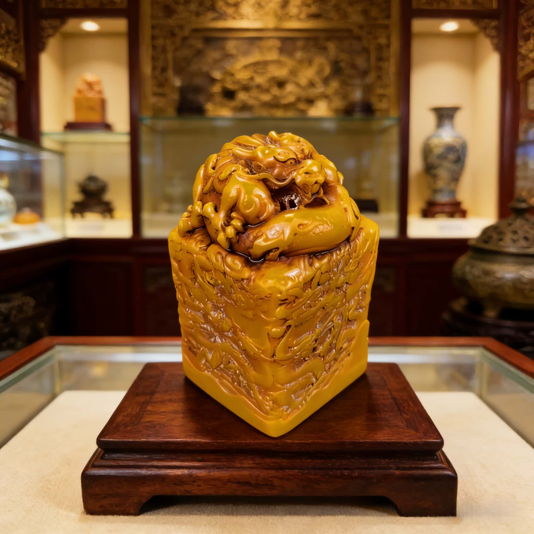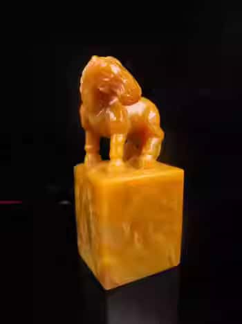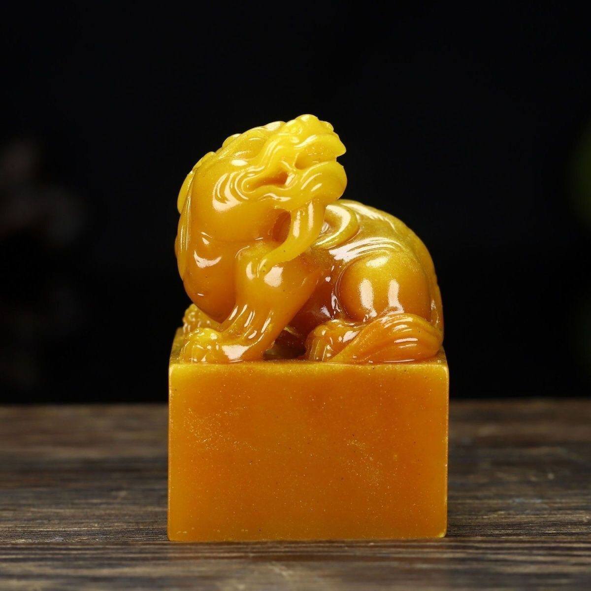2005年中国福建寿山石・田黄石・貔貅紋印鑑・彫刻・トップコレクション版田黄石